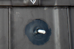 穴を開けた瓦にアンカーボルトを通し、瓦を取り付け、防水処理を施します。